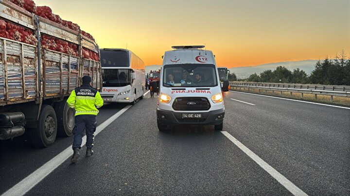 Kaza nedeniyle bölgede ulaşım tek şeritten sağlanıyor.