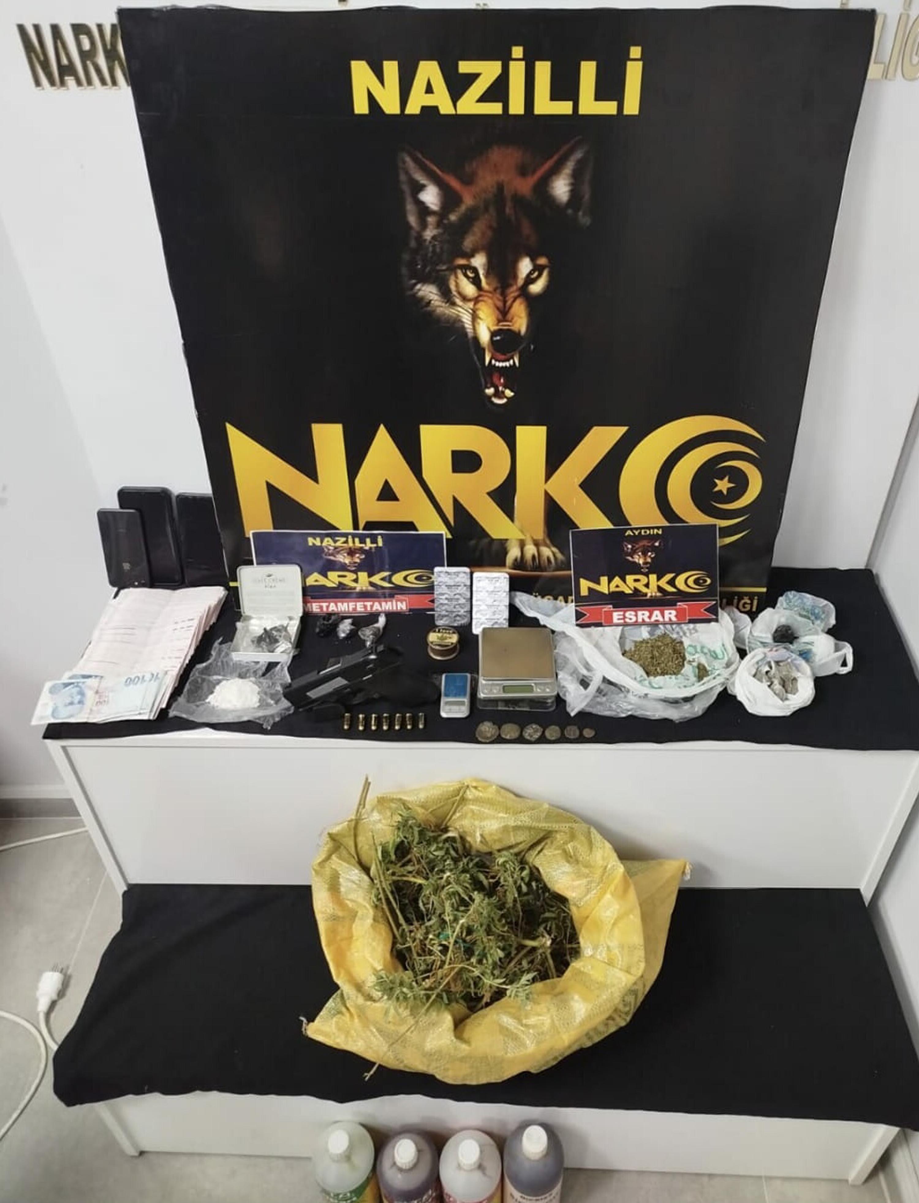 Teknik ve fiziki takibin sonucunda, dün gerçekleştirilen eş zamanlı operasyonda 3 şüpheli hedef alındı. Evlerinde, üzerlerinde ve arabalarında yapılan aramalarda, 60 gram metamfetamin, 41 gram esrar, 20 sentetik hap, 1 kenevir bitkisi, 2 hassas terazi, 1 ruhsatsız tabanca ve çok sayıda mermi ele geçirildi. Ayrıca, uyuşturucu satışından elde edildiği düşünülen 25 bin TL ve kenevir yetiştirmeye uygun çeşitli cihaz ve sıvılar da bulundu. Operasyon kapsamında L.Ç., M.Z. ve B.A. isimli şüpheliler gözaltına alındı.