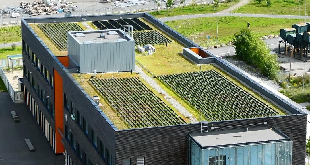 Dikey güneş panelleri ve yeşil çatı bir arada